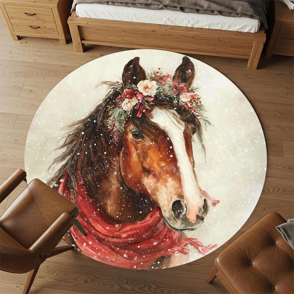 1PC horse snowflake Office Round Area Rug, Under Office Chairs Bedroom Living Room Home Decor,Carpet for Office, -1110238
