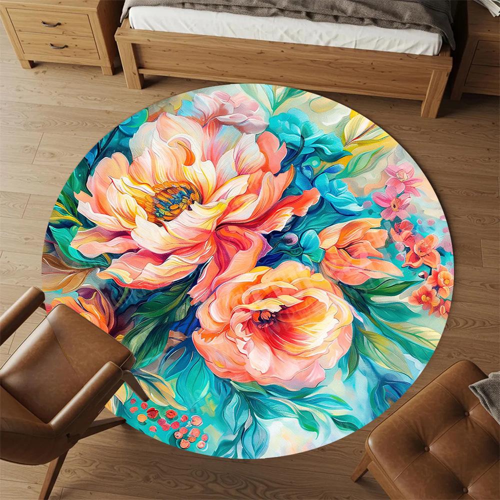 1PC Floral Artwork Office Round Area Rug, Under Office Chairs Bedroom Living Room Home Decor, Carpet for Office -1110045