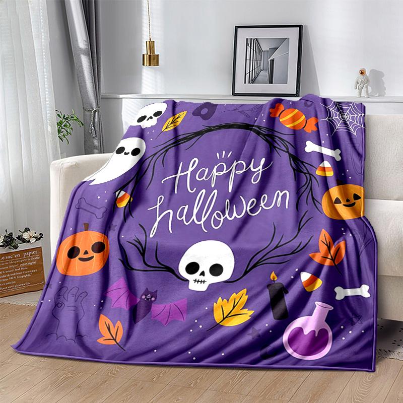 1pc Happy Halloween Cute Pumpkin Ghost Skull Blanket Soft Throw for Home Decor, Gift Idea, Living Room, Travel, Camping, Car Blankets
