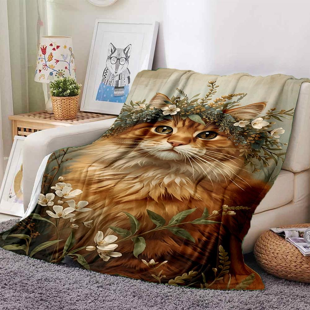 1pc cat flowers blanket Lightweight Flannel Throw for Sofa Bed Travel Camping Livingroom Office Couch Chair