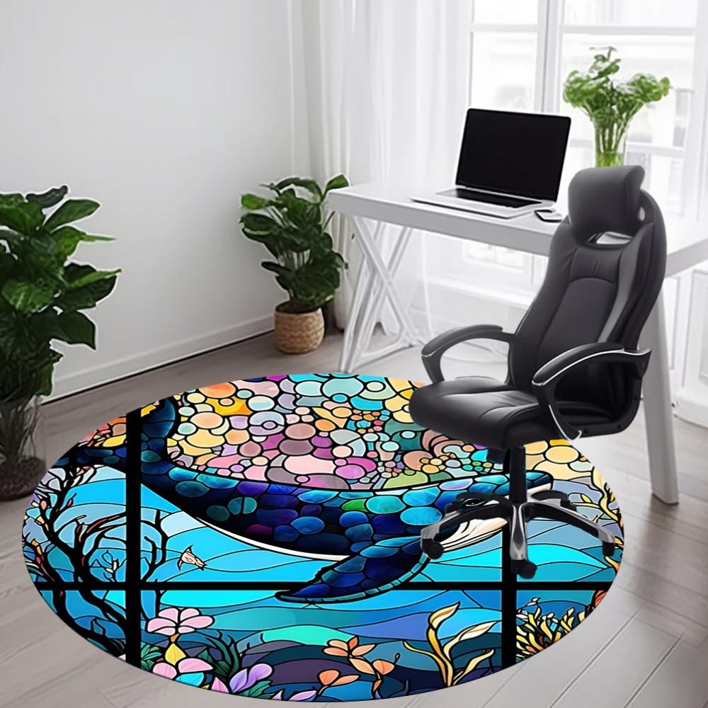 1pc Whale StainedGlass Office Round Area Rug, Under Office Chairs Bedroom Living Room Home Decor, Room Deco
