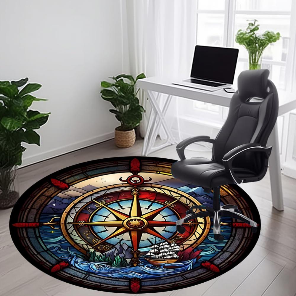 1ks Mořský kompas Kancelářský kulatý koberec, Pod kancelářské židle Ložnice Obývací pokoj Domácí dekorace, Dekorace místnosti