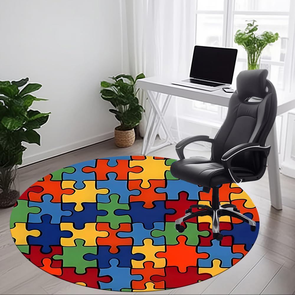 1pc Puzzle Pieces Chair Carpet for Office, Round Non Slip Durable Large Size Office Carpet, Suitable for Office