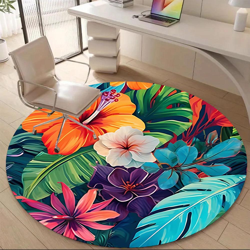 1pc Tropical Flowers Office Round Area Rug, Under Office Chairs Bedroom Living Room Home Decor, Room Deco