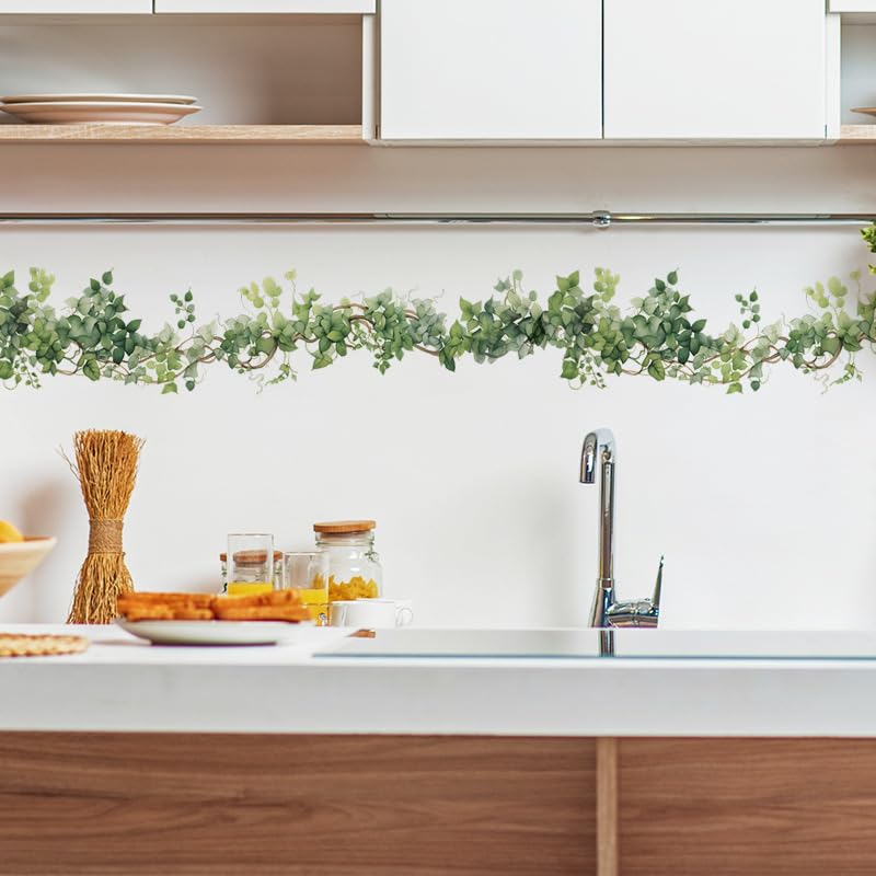 Green Leaves Rattan Wall Sticker Nordic Style Plant Wall Decal