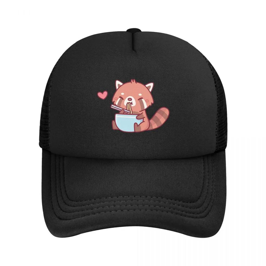 Cute Little Red Panda Eating Ramen Mesh Baseball Caps Snapback Fashion Baseball Hats Casquette Outdoor For Mens And Womens