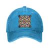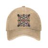 Vibrant Mandala Print Washed Denim Baseball Cap Psychedelic Abstract Curved Brim Adjustable Dad Hat Unisex