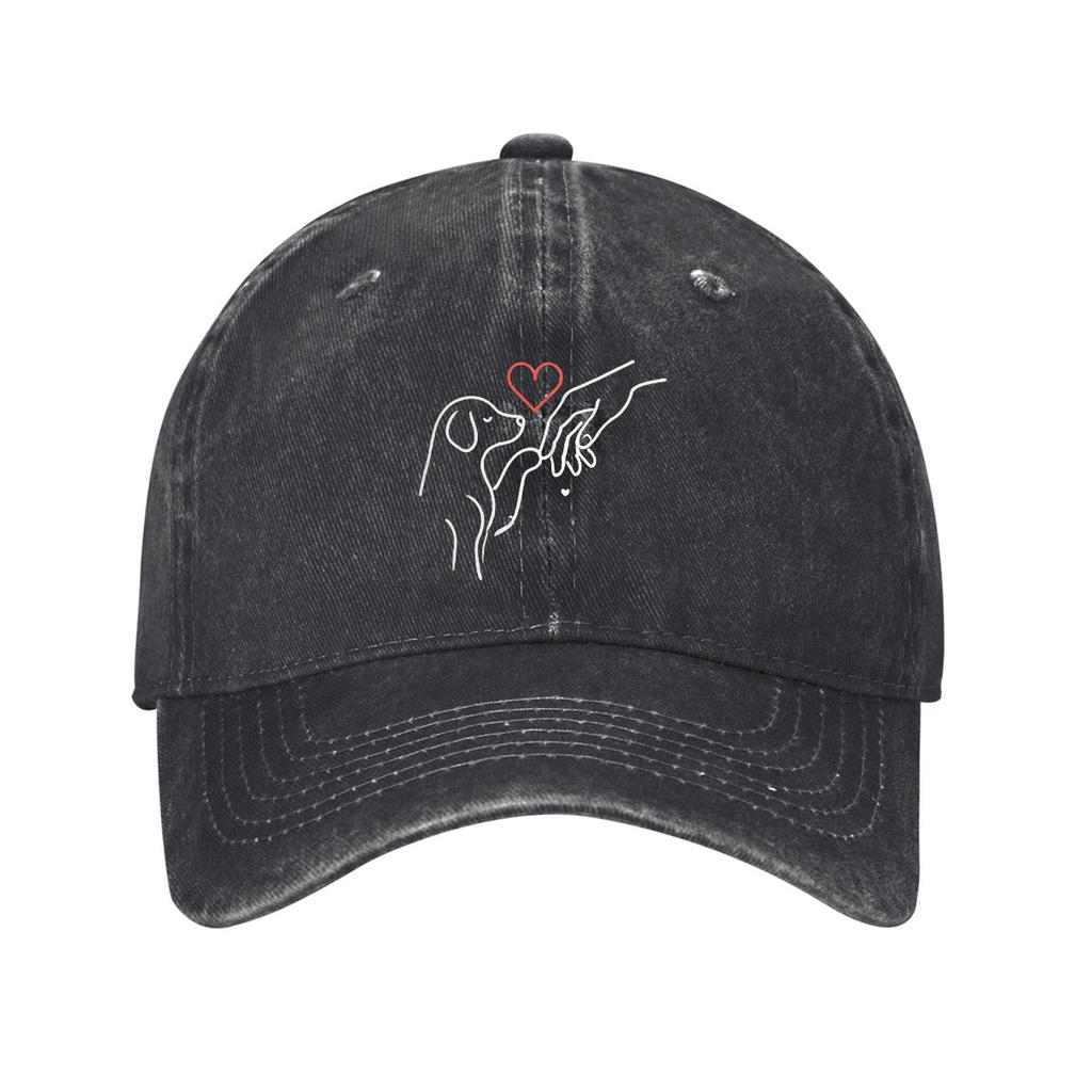 Dog Paw Hand Heart Line Art Baseball Cap Washed Cotton Adjustable Dad Hat Casual Unisex Outdoor Cap