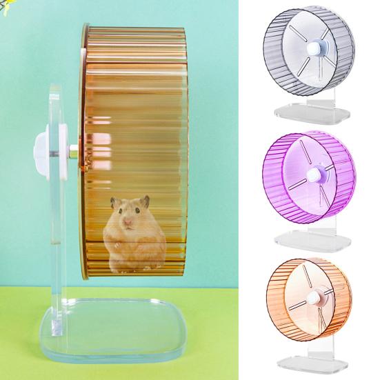Introducing the hamster wheel, the perfect accessory for your small furry friends to enjoy a happy and active life! This easy-to-use running wheel can be installed with a bracket (not included) or attached to the side of an iron cage, making it convenient for any pet owner. The transparent sides allow for easy observation of your pets while they exercise.