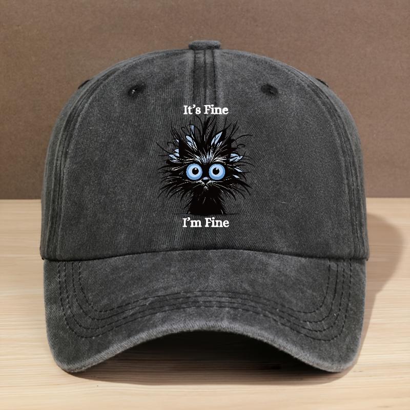 Módní Baseballová Čepice ItS Fine Im Fine s Kočičí Grafikou, Vypraná, Nastavitelná Velikost, Lehká, Odolná