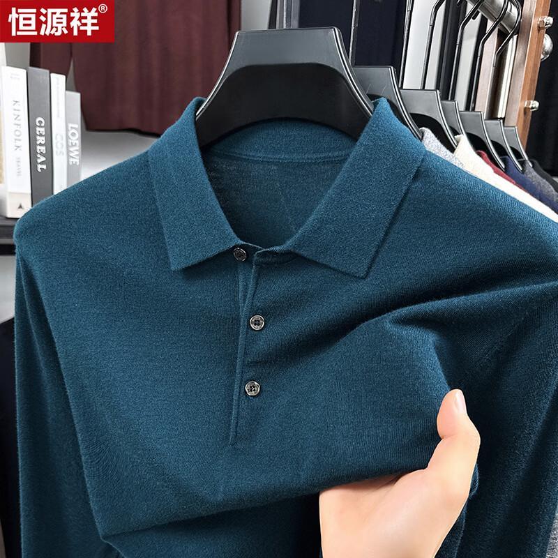 Hengyuanxiang Men's Polo Collar Wool Blend Long-sleeve Sweater