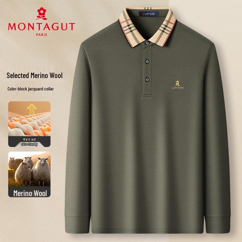 MONTAGUT Men's Merino Wool Blend Jacquard Polo Shirt