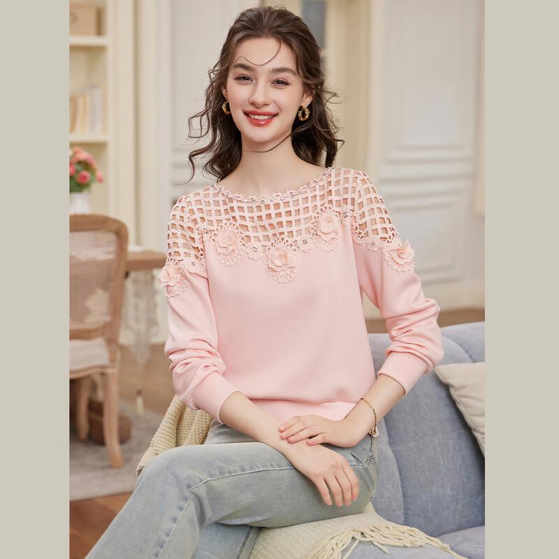 Bailuyu Women's 2026 Spring Lace Rivet Hollow Out Pullover Sweatshirt