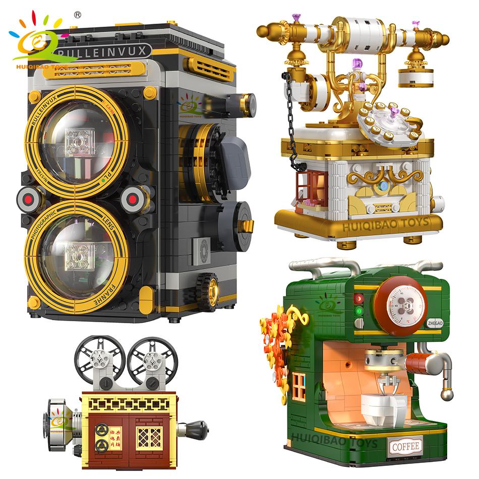 The Vintage Camera Coffee Machine Model Building Blocks boasts a unique vintage design, adding a touch of retro charm to any room.