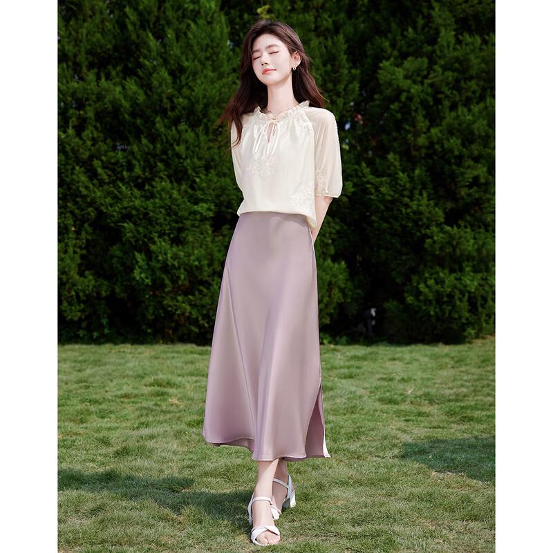 Si Shui Nian Hua Women's Simple Commuter Midi Skirt