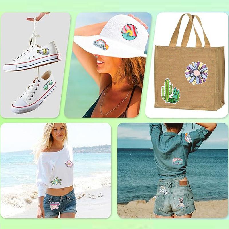 Summer Series Wave Embroidery Cloth Sticker Rainbow Cactus Computer Embroidery Label Cartoon Bus Patch Sticker