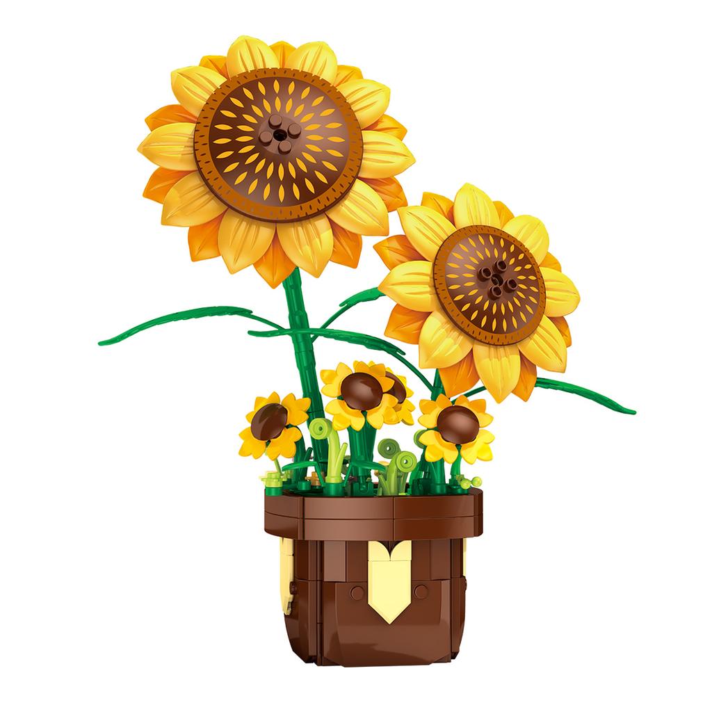 Non-Toxic 291Pcs Sunflower Potted Plant Building Block Flower Model Puzzle Toys Sets New Year Christmas Birthday Gifts
