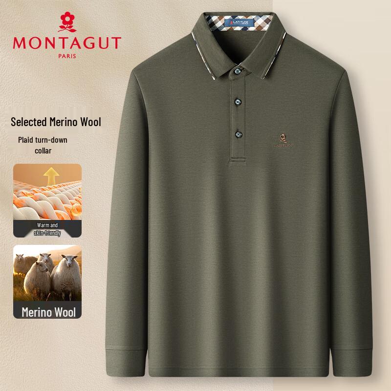 MONTAGUT Pánské polo triko s dlouhým rukávem z merinové vlny