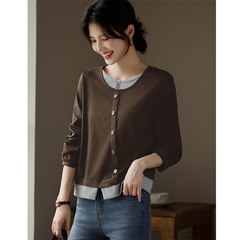 Women's Faux Two-Piece Long Sleeve Split Hem T-Shirt