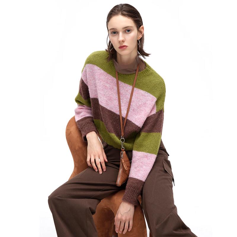 Women's Loose Fit Color Block Striped Knit Pullover