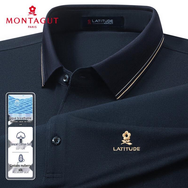 MONTAGUT Men's Silk Blend Pique Long Sleeve Polo Shirt