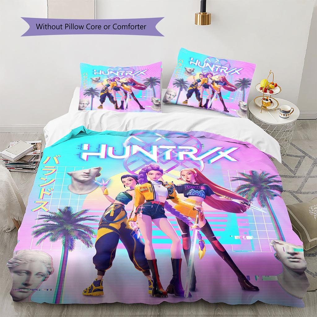 kpop hunter Pattern Bedding Quilt Set Quilt Cover Pillowcase Home Decoration Birthday Gift (1 * duvet cover + 2 * pillowcase, without core)