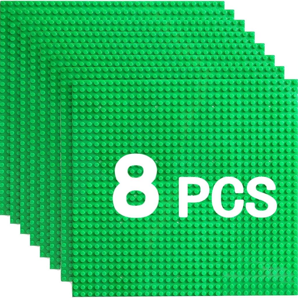 Set of 8 Green Block Foundation Plates, Reinforced and Durable, 32x32mm Studs, 25.5x25.5cm, Compatible with Building Blocks