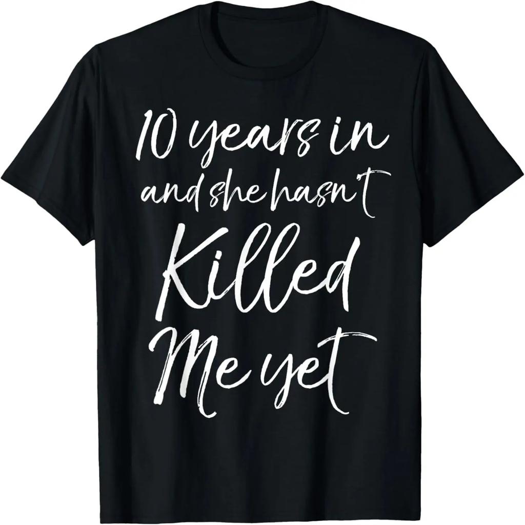 10 Years in & She hasn't Killed Me Yet Tee 10th Anniversary T-Shirt