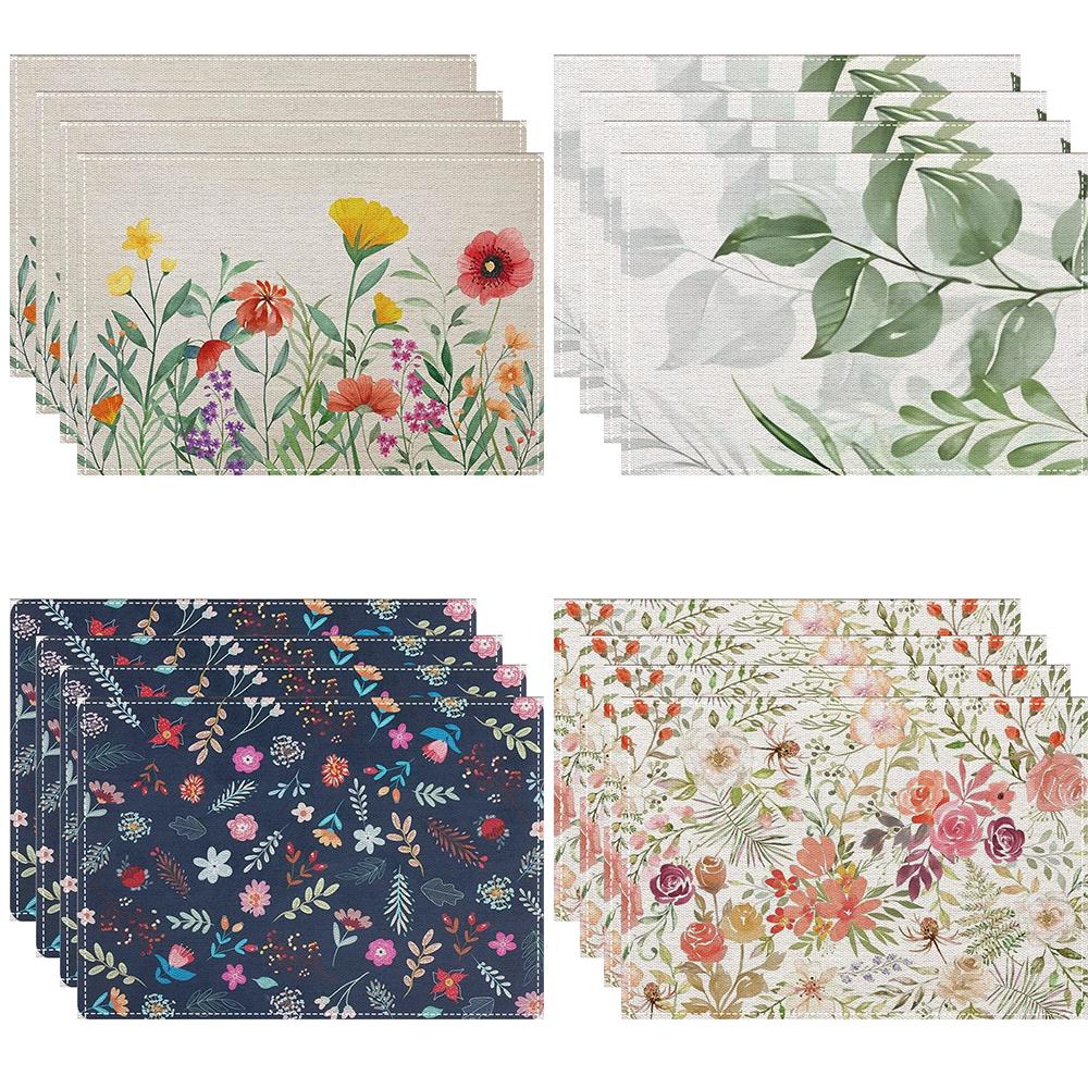 4/6/8Pcs Watercolor flower Placemats Linen Placemat 32*42CM Linen Seasonal Table Mats for Party Kitchen Wedding Dining Decor