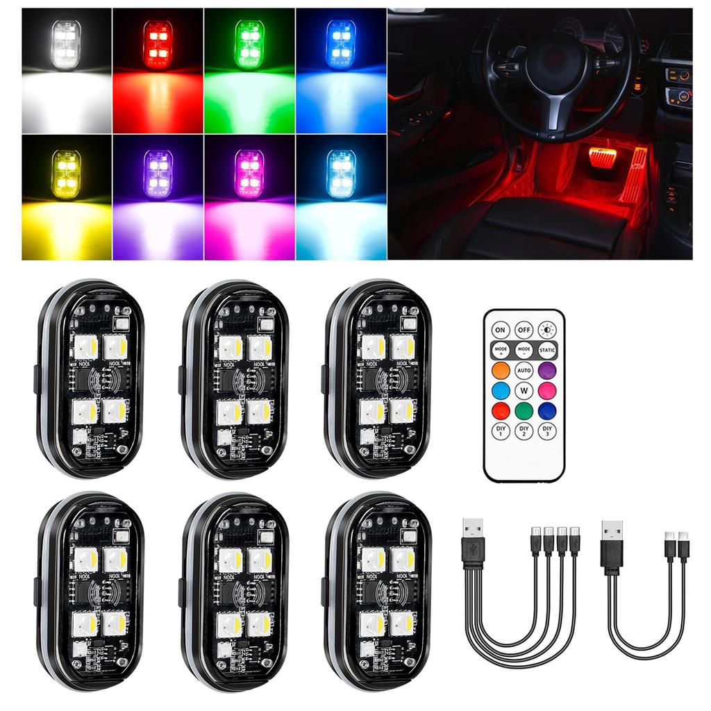 [8 barev, 10 režimů, 3 úrovně jasu, snadné ovládání jedním dálkovým ovladačem] Toto výstražné světlo nabízí 8 barev (bílá, červená, zelená, modrá, žlutá, růžová, fialová a ledově modrá), 10 světelných režimů a 3 úrovně jasu. Pro snadné použití samotné LED stroboskopické světlo nemá žádná tlačítka. Lze snadno přepínat jedním dálkovým ovladačem. Dálkové ovládání lze používat na vzdálenost přibližně 8 metrů.. Toto LED světlo je vhodné pro různé příležitosti, včetně osvětlení atmosféry interiéru automobilů, noční cyklistiky a jízdy na motocyklu, kempování, nočního rybolovu, nočního běhu, venkovního osvětlení, horolezectví, RC modelů a dekorativního osvětlení pro večírky a svátky.