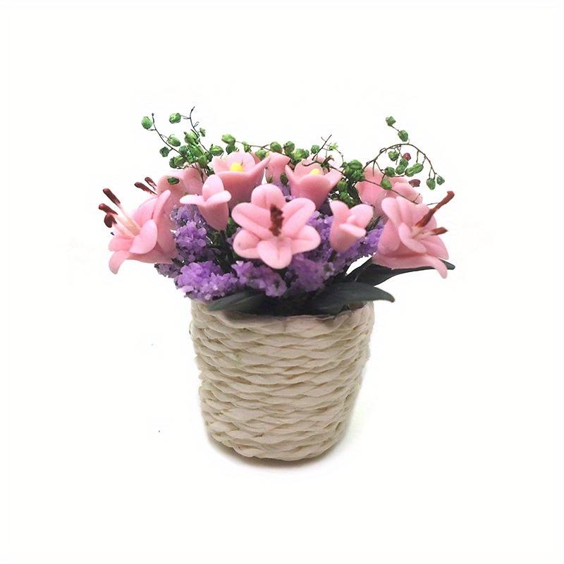 1:12 Miniature Clay Flower Mini Potted Plant Lily Flower Flowerpot Decor Bonsai Model Garden Home Ornament Furniture