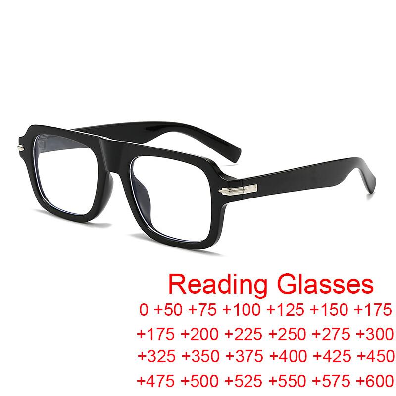 Oversized Square Reading Glasses for Men Women Luxury Brand Anti Blue Light Presbyopic Prescription Eyewear Black
