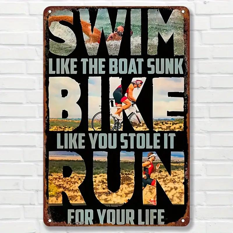Inspirational Triathlon Metal Tin Sign Swim Bike Run Motivational Wall Art for Gym Home Workout Room Fitness Enthusi