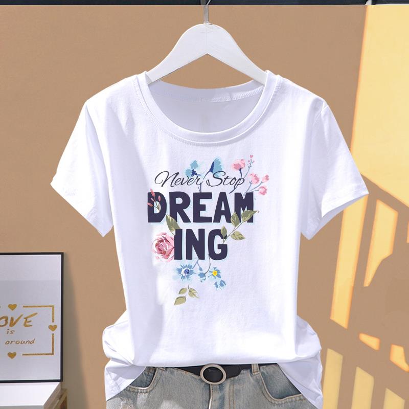 (Asian Size) cute letter style Women's Top T shirt Printed O-neck Short Sleeve T-shirts Fashion Female Casual Clothing Graphic Tee