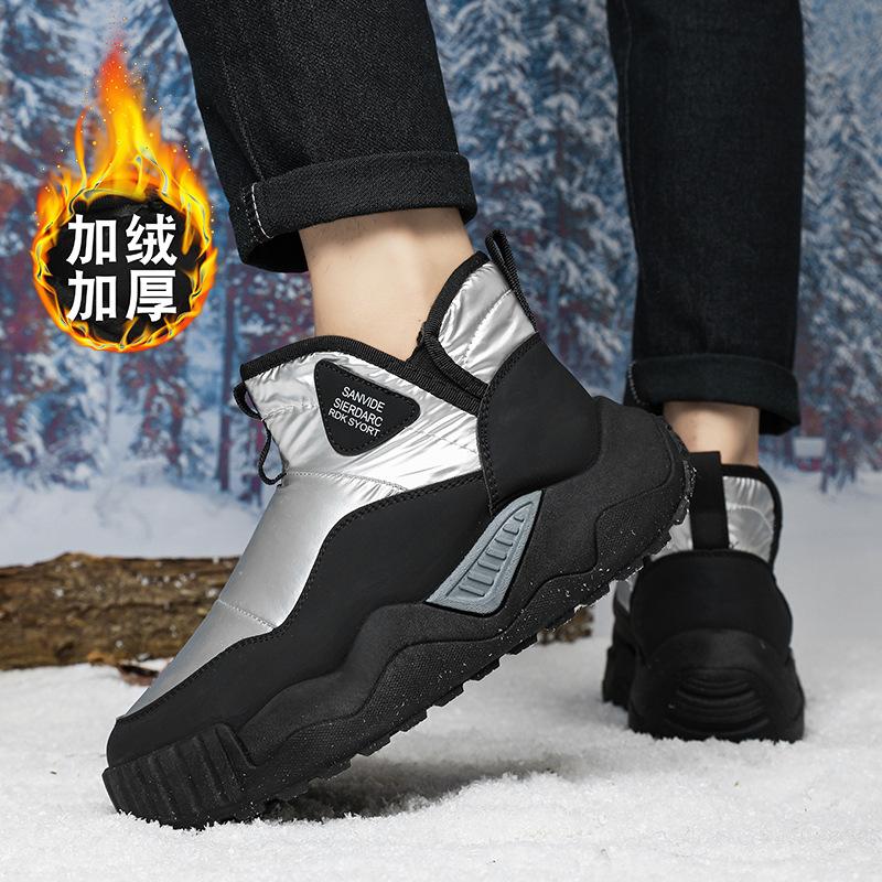 Down snow boots winter down thickened warm fur integrated high-top non-slip waterproof large cotton shoes