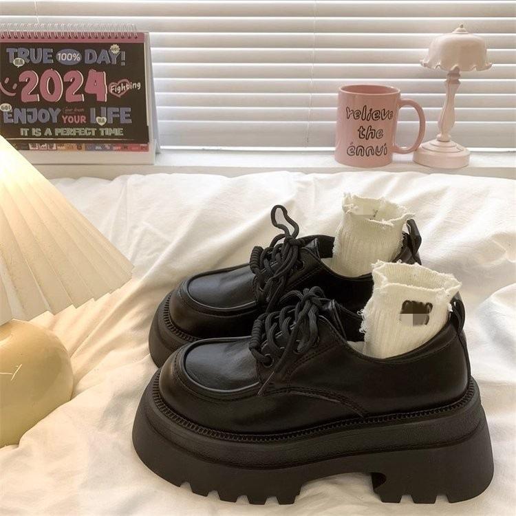 Muffin platform small leather shoes spring new white British style round head lace-up Japanese single shoes