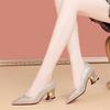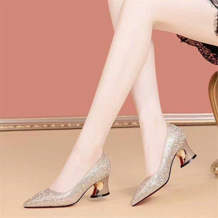 Rhinestone medium heel shallow mouth single shoes autumn new pointed thick heel wedding shoes with cheongsam shoes temperament socialite