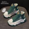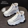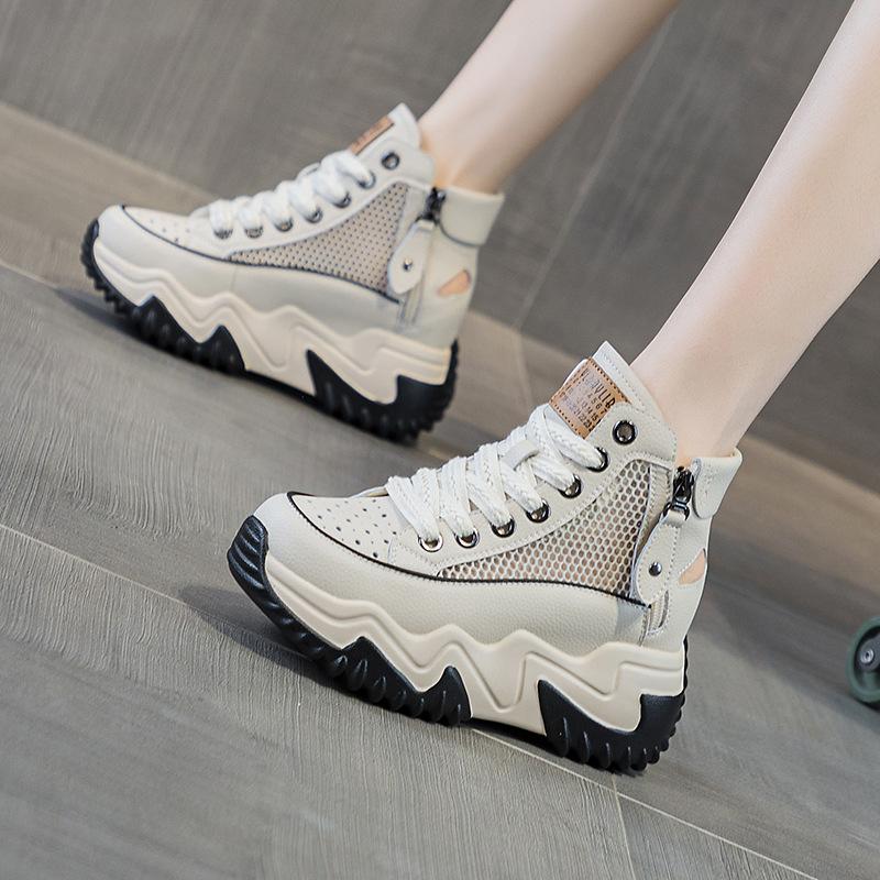 Mesh high-top dad shoes summer new leather thick-soled small hollow breathable casual shoes