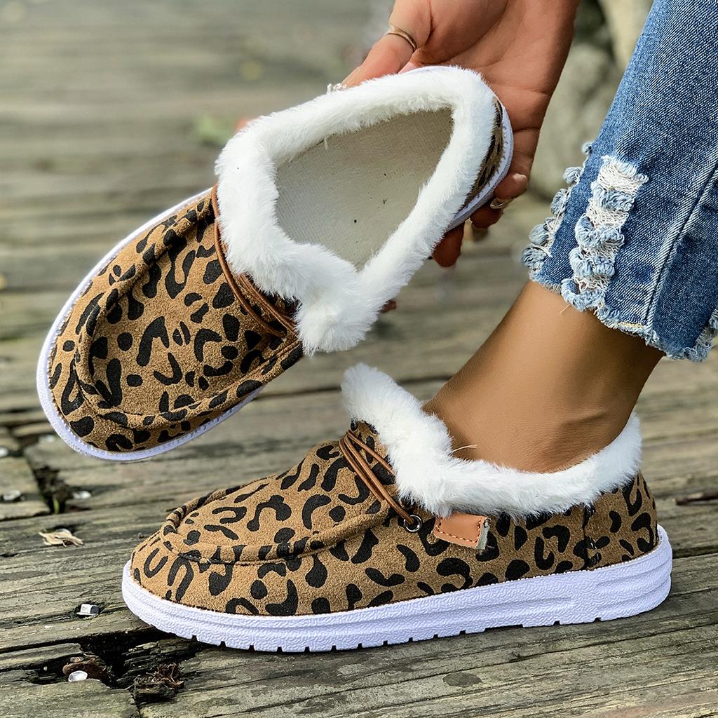 New cotton shoes snow boots autumn and winter leopard print flat bottom foot fluff daily large size
