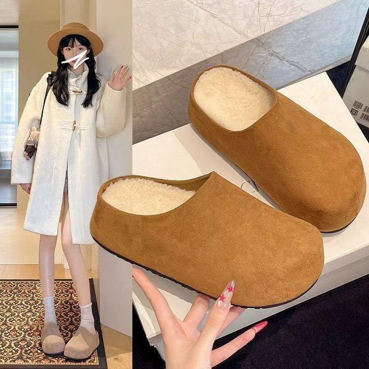 Retro style platform Birkenstocks, new velvet bag head half slippers, cotton slippers for autumn and winter