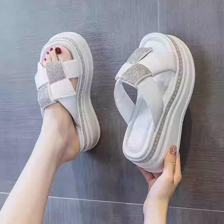 Brand broken size soft leather outer wear one-word slippers new sandals in summer muffin platform sandals