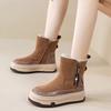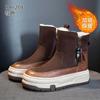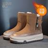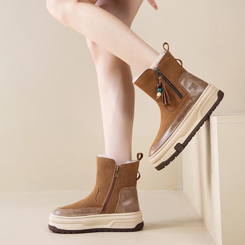 Fleece snow boots winter new leather rabbit fur short boots thick-soled warm cotton shoes