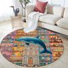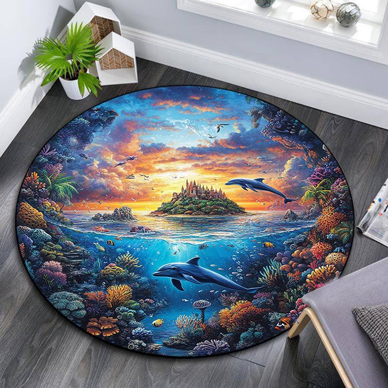 Dolphins Coral Round Area Rug,Carpet Rug for Living Room Bedroom Sofa Playroom Decor,Non-slip Floor Mat
