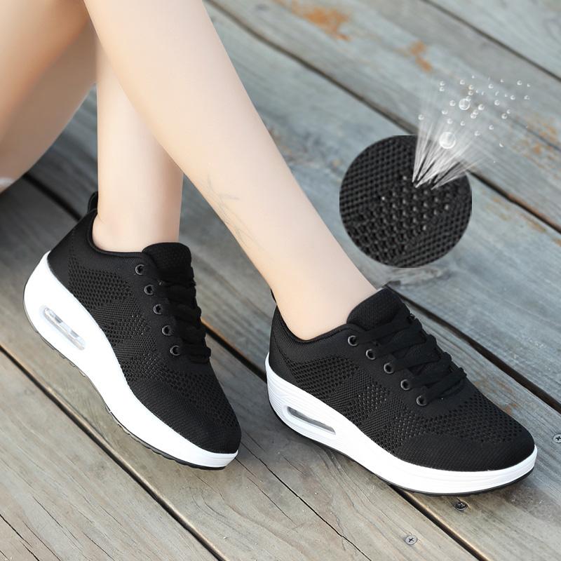 Spring and summer breathable rocking shoes flying woven single shoes sports shoes platform heightening casual shoes