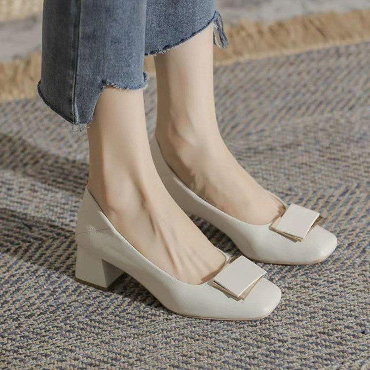 Niche design sense, shallow mouth square head middle heel single shoes, autumn new models are not tired of standing for a long time, professiona