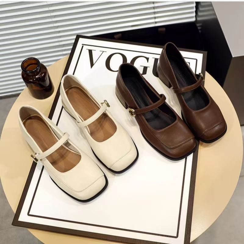 French temperament one-word Mary Jane shoes new autumn retro light mouth square head thick heel single shoes
