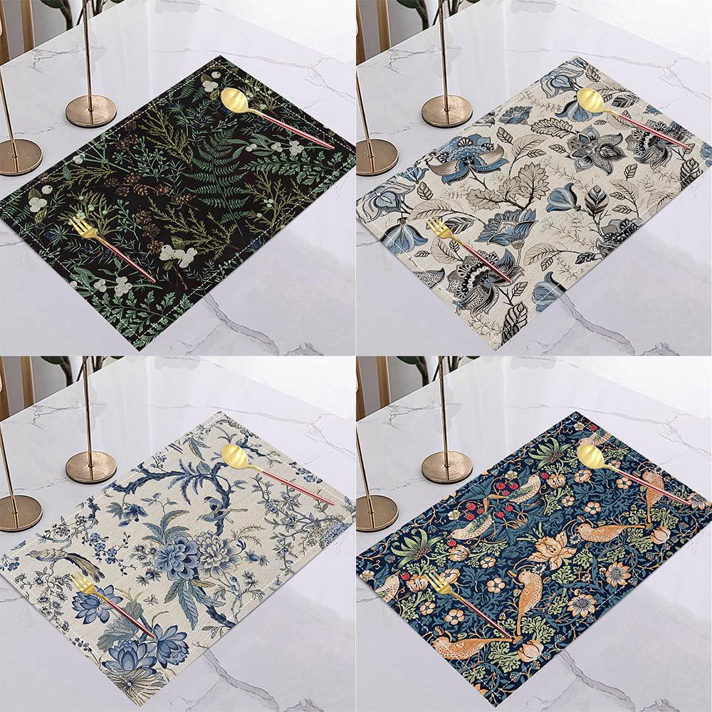 4/6/8pc Plant Flower Linen Placemats Multicolor Flower Printed Insulation Mats Nordic Kitchen Dining Room Decorative Placemats