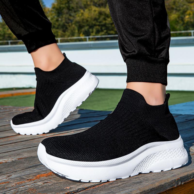 Flash wear lace-free lazy casual shoes outdoor non-slip wear-resistant fly-woven mesh socks shoes