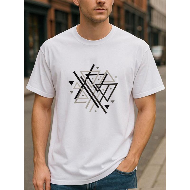 European sizes Geometric Triangular Lines Minimalist and Trendy Creative Printed T-shirt, Short-sleeved Top, Casual Short-sleeved T-shirt