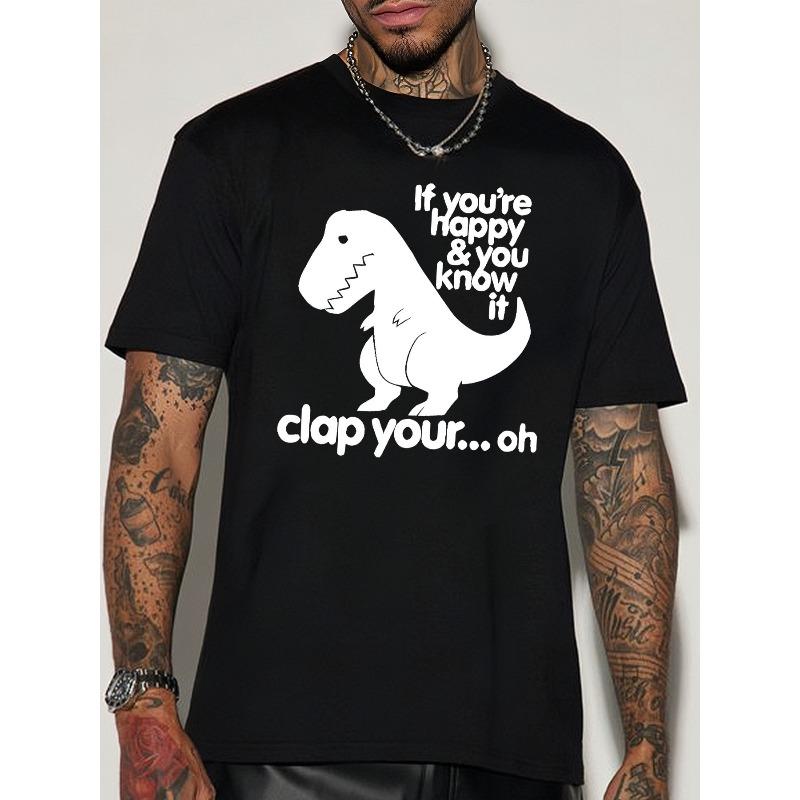 European sizes Men'S Summer Casual Short Sleeve T-Shirt with Dinosaur Print, Round Neck, Polyester Knit Fabric, Regular Fit, Adult Sizes